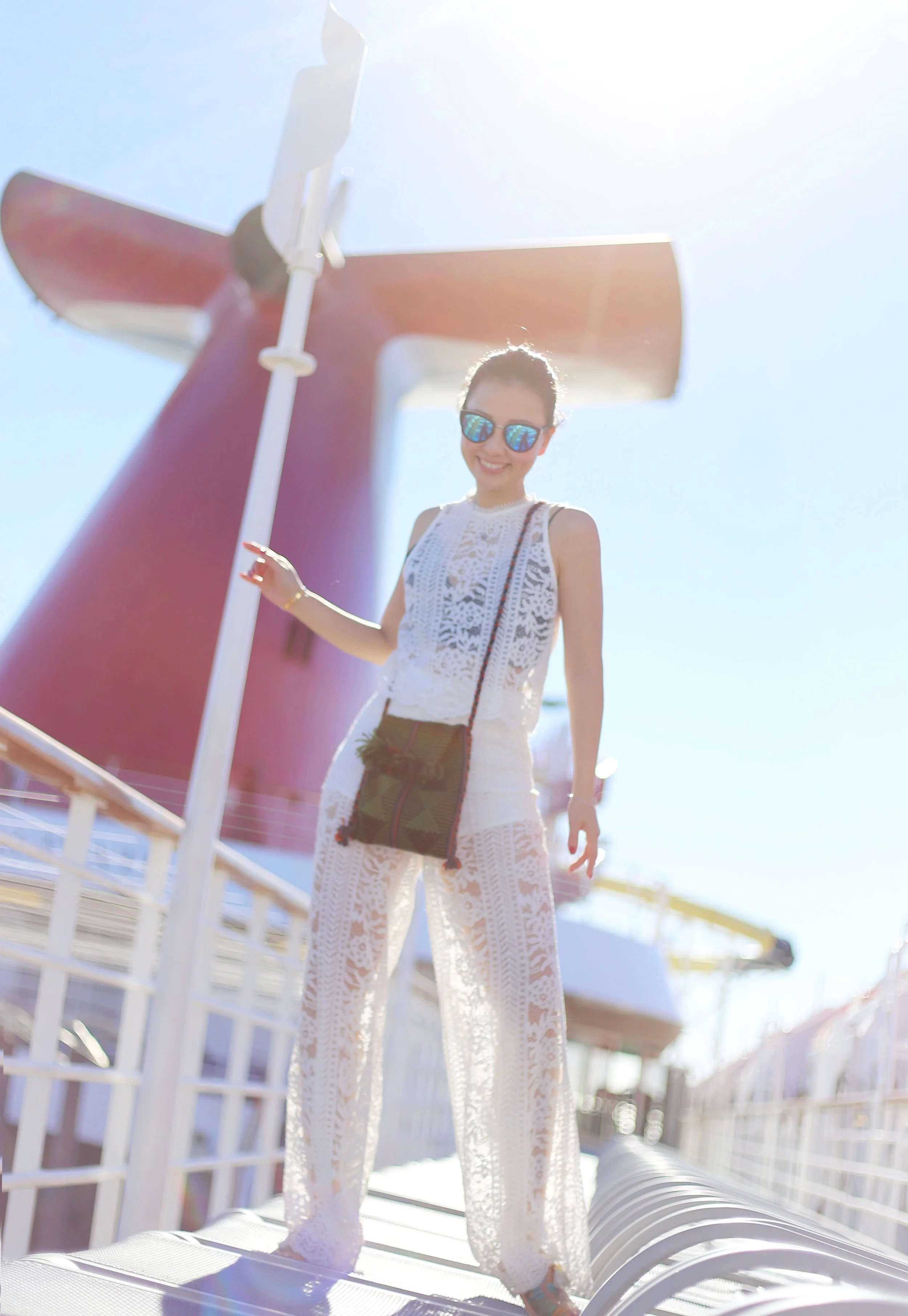 I spent some quality time with family on Carnival cruise to Mexico during the Christmas holiday! To me, cruise is for "lazy" people, you don't plan where to eat or where to play, the cruise has hourly activities planned for you on a daily basis, you can simply pick and choose what you want to do or nothing at all. And as most of you might know, day time is extremely casual, you can wear whatever you like. Night time is a dress up opportunity for lots of people because there is a formal dinner and 2 night clubs on board for 21 plus. Therefore, I packed for all occasions and styled my outfits with Linked Jewelries!
