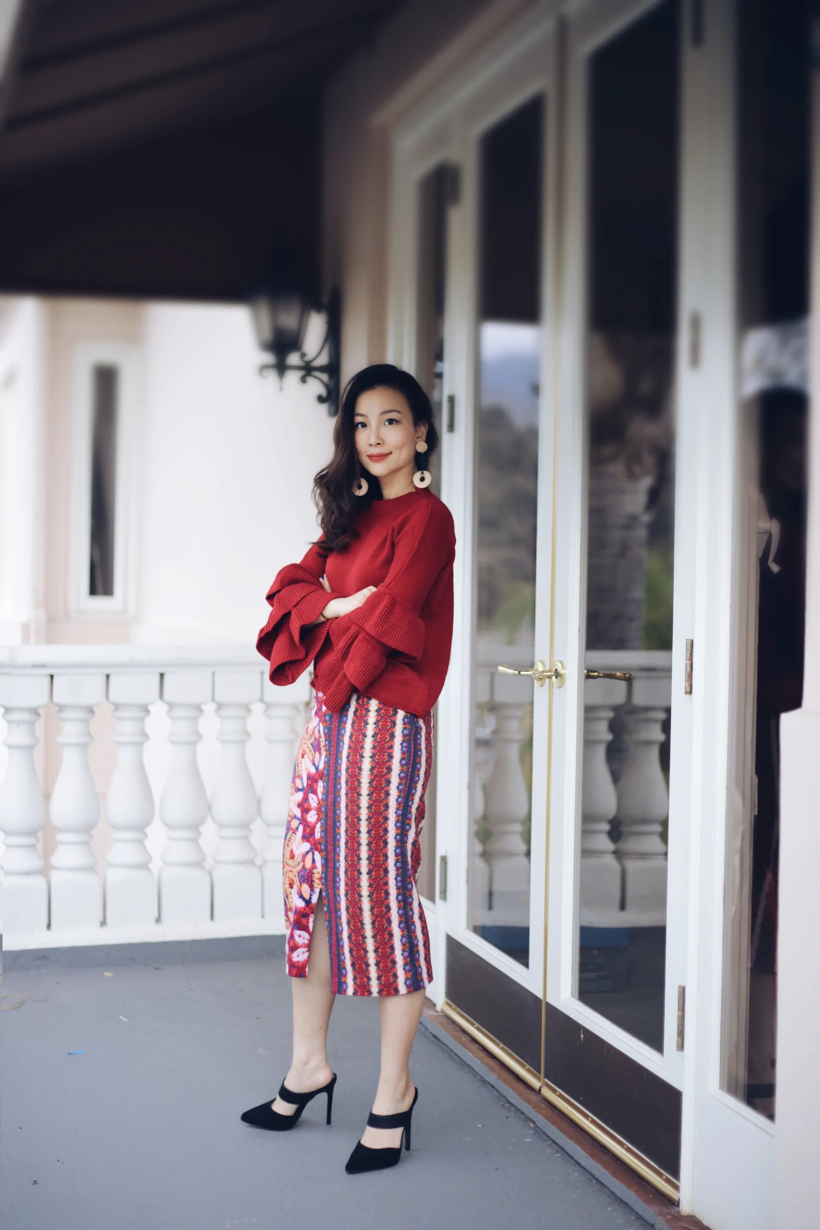 As the bell sleeve trend continues, I found this cute tiered red ruffled sweater, it's another versatile piece where you can pair it with a pencil skirt for an elegant look, or wear it with A line mini skirt for a casual look.