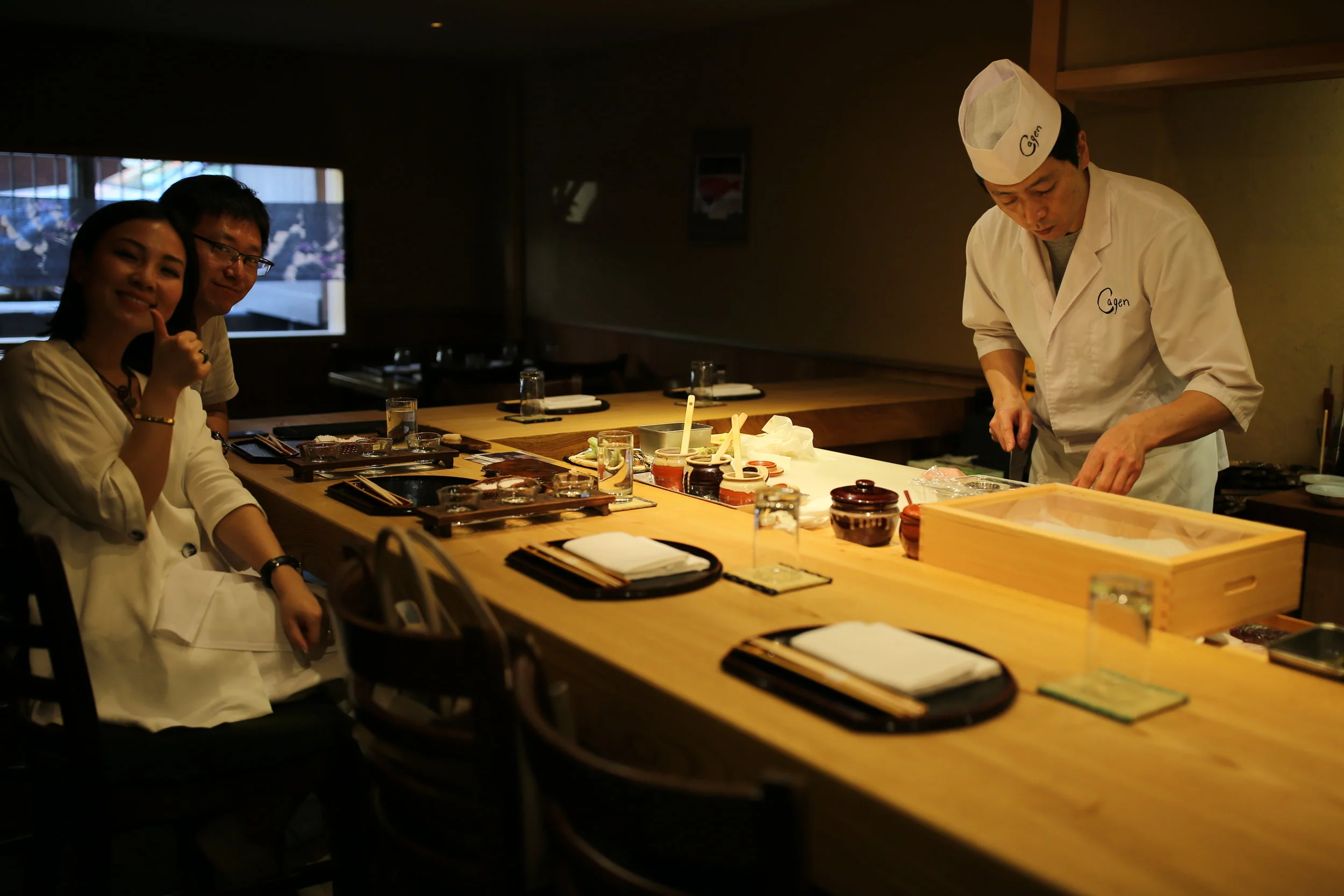 Our random exploration almost always ends with the thought of going to a sushi place for dinner, especially when we are in downtown. I had fond memories of Cagen, and we tried to walk in a couple of times before, but obviously it's quite impossible (need to reserve at least 3 days in advance) . But I thought it doesn't hurt to try again anyways. It was 5:30pm when we walked over from lower east side to east village, and thought we might have a better chance to get a seat at the sushi bar since we were so early. They were not even open by the time we stood in front of the restaurant. Simon was like, ok, let's try another sushi spot down the street. But I said, "let's call them." To our surprise, they opened the door and welcomed us in. The hostess told us they were making rice and would take 15 minutes. We didn't mind at all, especially with sake! We were the only customer there for the entire omakase meal. Best meal ever :D